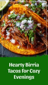 Warm up with our authentic Birria Tacos recipe! The ultimate comfort food for a cozy night in. Cheesy, rich, and perfect for dipping. #BirriaTacos #TacoRecipe #ComfortFood #EasyDinner #MexicanFood