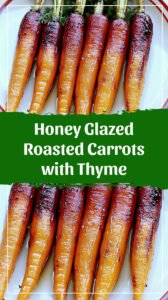 Sweet & savory honey glazed roasted carrots with fresh thyme. An easy, elegant side dish that’s perfect for holidays and weeknights! #recipe, #sidedish, #easyrecipes, #vegetarian, #thanksgiving